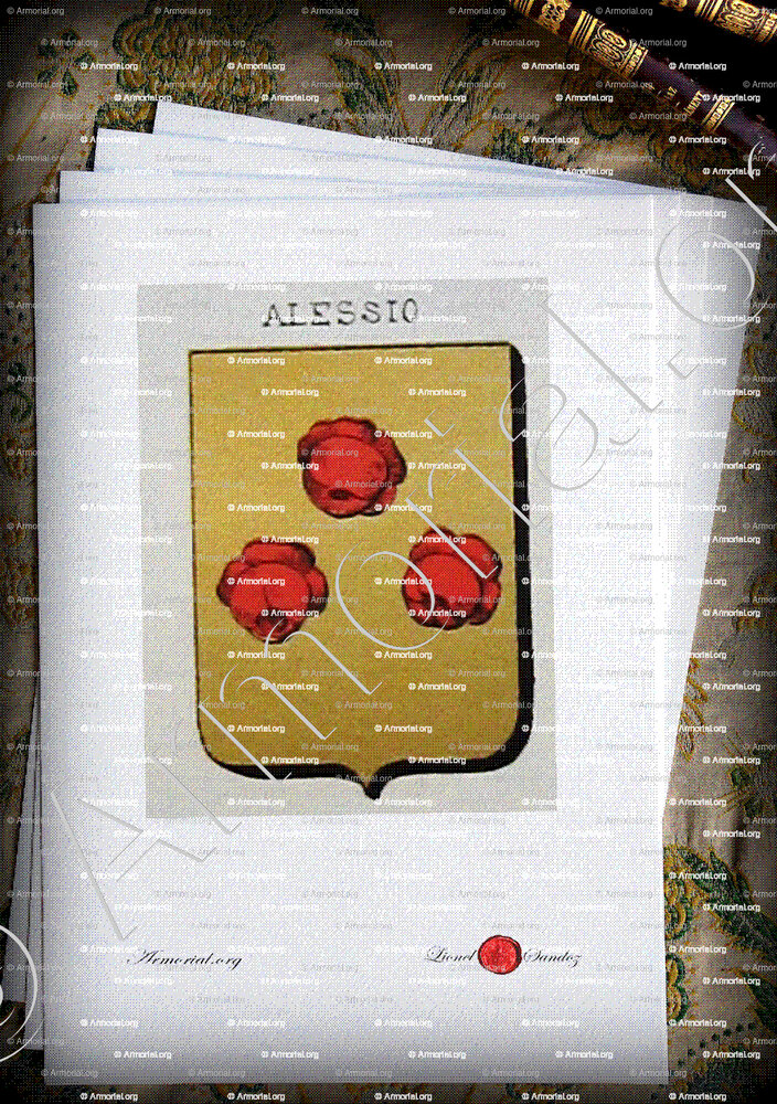 Familia ALESSIO - Blasón ALESSIO - Escudo de armas ALESSIO - Escudo ALESSIO - Blasón ALESSIO - Armas ALESSIO - Las armas de ALESSIO - Sello ALESSIO - Archivo ALESSIO - Genealogía ALESSIO - Árbol genealógico ALESSIO - Heráldica ALESSIO - Origen ALESSIO - ALESSIO en Historia - ALESSIO en la nobleza - Lema ALESSIO - Divisa ALESSIO .