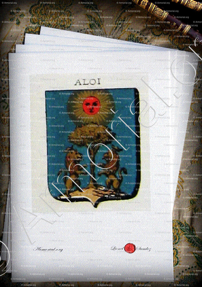 Famille ALOI - Blason ALOI - Blasonnement ALOI - Armoiries ALOI - Armoiries de famille ALOI - Armorial ALOI - Armes ALOI - Armes sur un écu ALOI - Ecu ALOI - Ecus armoriés ALOI - Bannière, flanchières, caparaçon armoriés ALOI - Bouclier armorié ALOI - Sceau ALOI - Sceau armorié ALOI - Archives ALOI - Généalogie ALOI - Arbre généalogique ALOI - Ascendance ALOI - Descendance ALOI - Héraldique ALOI - Origine ALOI . - Les ALOI dans l'Histoire - Les ALOI dans la noblesse - Devise ALOI - Armoiries de bourgeoisie ALOI - Armoiries de noblesse ALOI .