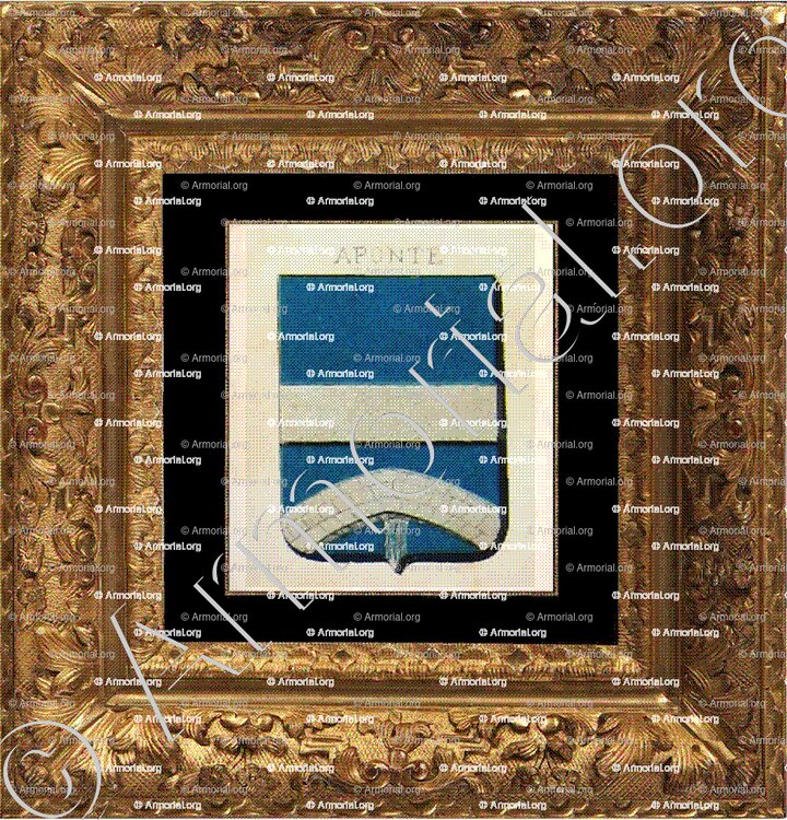 Família APONTE - Blazon APONTE - Braços APONTE - Crista da família APONTE - Armorial APONTE - Armas APONTE - Braços em um protetor APONTE - Brasonadas APONTE - Estampada APONTE - Escudo blazoned APONTE - Arquivo APONTE - Ascendência APONTE - Progeny APONTE - Heráldica APONTE - Origem APONTE. - O APONTE na História - APONTE na nobreza - Moeda APONTE - Burguesia Braços APONTE - Nobreza Braços APONTE.