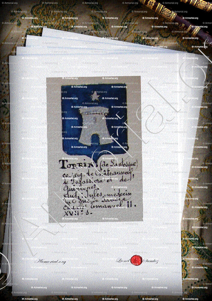 Famille TORRIN - Blason TORRIN - Blasonnement TORRIN - Armoiries TORRIN - Armoiries de famille TORRIN - Armorial TORRIN - Armes TORRIN - Armes sur un écu TORRIN - Ecu TORRIN - Ecus armoriés TORRIN - Bannière, flanchières, caparaçon armoriés TORRIN - Bouclier armorié TORRIN - Sceau TORRIN - Sceau armorié TORRIN - Archives TORRIN - Généalogie TORRIN - Arbre généalogique TORRIN - Ascendance TORRIN - Descendance TORRIN - Héraldique TORRIN - Origine TORRIN. - Les TORRIN dans l'Histoire - Les TORRIN dans la noblesse - Devise TORRIN - Armoiries de bourgeoisie TORRIN - Armoiries de noblesse TORRIN.