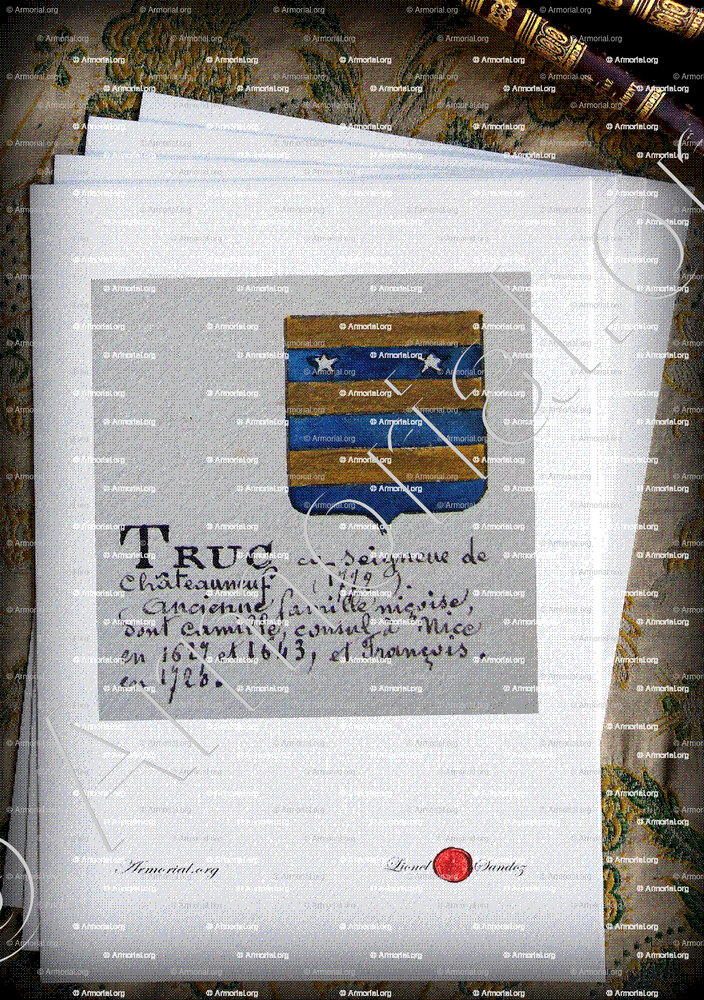 Origine du blason " TRUC " : " Armorial Nice. (J. Casal, 1903) (Bibl. mun. de Nice)., France (i) "