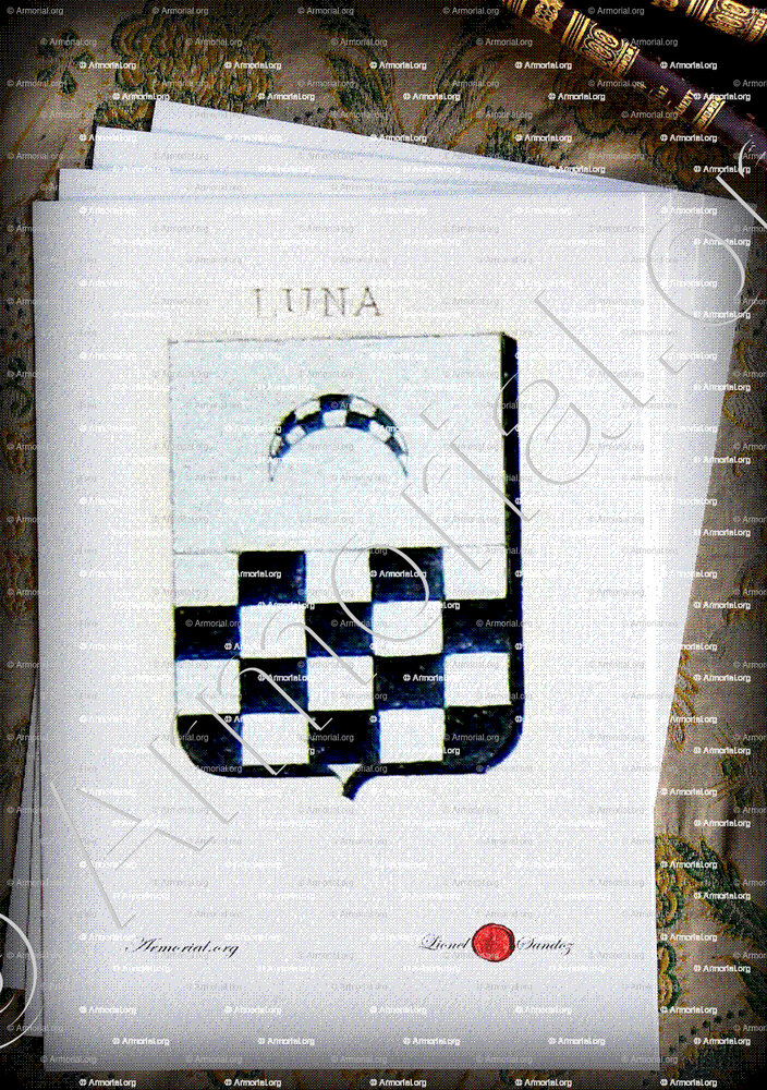 Famille LUNA - Blason LUNA - Blasonnement LUNA - Armoiries LUNA - Armoiries de famille LUNA - Armorial LUNA - Armes LUNA - Armes sur un écu LUNA - Ecu LUNA - Ecus armoriés LUNA - Bannière, flanchières, caparaçon armoriés LUNA - Bouclier armorié LUNA - Sceau LUNA - Sceau armorié LUNA - Archives LUNA - Généalogie LUNA - Arbre généalogique LUNA - Ascendance LUNA - Descendance LUNA - Héraldique LUNA - Origine LUNA . - Les LUNA dans l'Histoire - Les LUNA dans la noblesse - Devise LUNA - Armoiries de bourgeoisie LUNA - Armoiries de noblesse LUNA .