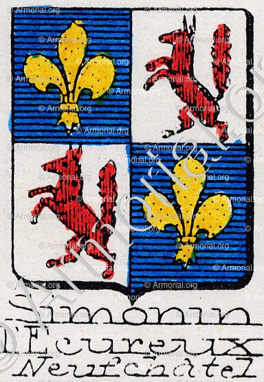 Origine du blason " SIMONIN l'ECUREUX " : " Neuchâtel, Suisse "