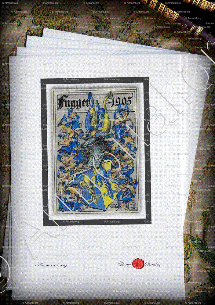 Famille FUGGER - Blason FUGGER - Blasonnement FUGGER - Armoiries FUGGER - Armoiries de famille FUGGER - Armorial FUGGER - Armes FUGGER - Armes sur un écu FUGGER - Ecu FUGGER - Ecus armoriés FUGGER - Bannière, flanchières, caparaçon armoriés FUGGER - Bouclier armorié FUGGER - Sceau FUGGER - Sceau armorié FUGGER - Archives FUGGER - Généalogie FUGGER - Arbre généalogique FUGGER - Ascendance FUGGER - Descendance FUGGER - Héraldique FUGGER - Origine FUGGER - Les FUGGER dans l'Histoire - Les FUGGER dans la noblesse - Devise FUGGER - Armoiries de bourgeoisie FUGGER - Armoiries de noblesse FUGGER.