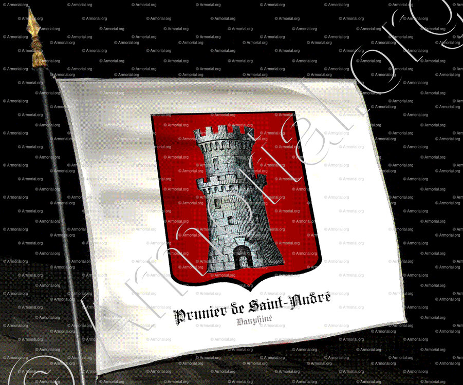 " De gueules, à une tour d'argent, sommée d'une tourelle du même ".