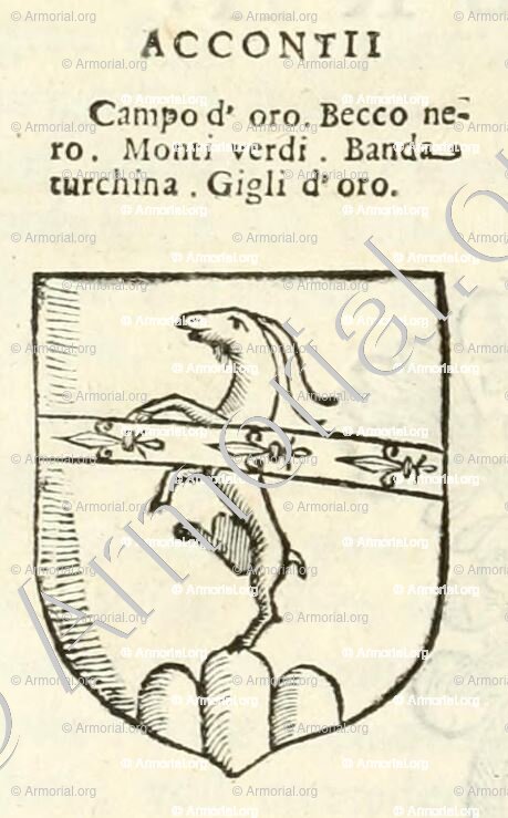 Family ACCONTII - Blazon ACCONTII - Coat of arms ACCONTII - Arms of ACCONTII - Family arms ACCONTII - Emblem ACCONTII - Crest ACCONTII - Seal ACCONTII - Heraldic ACCONTII - heraldic symbol ACCONTII - Genealogy ACCONTII - Family tree ACCONTII - Origin ACCONTII - The ACCONTII in the History - The ACCONTII in the nobility - Motto ACCONTII.