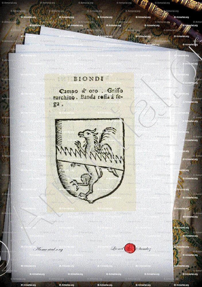 Familia BIONDI - Blasón BIONDI - Escudo de armas BIONDI - Escudo BIONDI - Blasón BIONDI - Armas BIONDI - Las armas de BIONDI - Sello BIONDI - Archivo BIONDI - Genealogía BIONDI - Árbol genealógico BIONDI - Heráldica BIONDI - Origen BIONDI - BIONDI en Historia - BIONDI en la nobleza - Lema BIONDI - Divisa BIONDI.