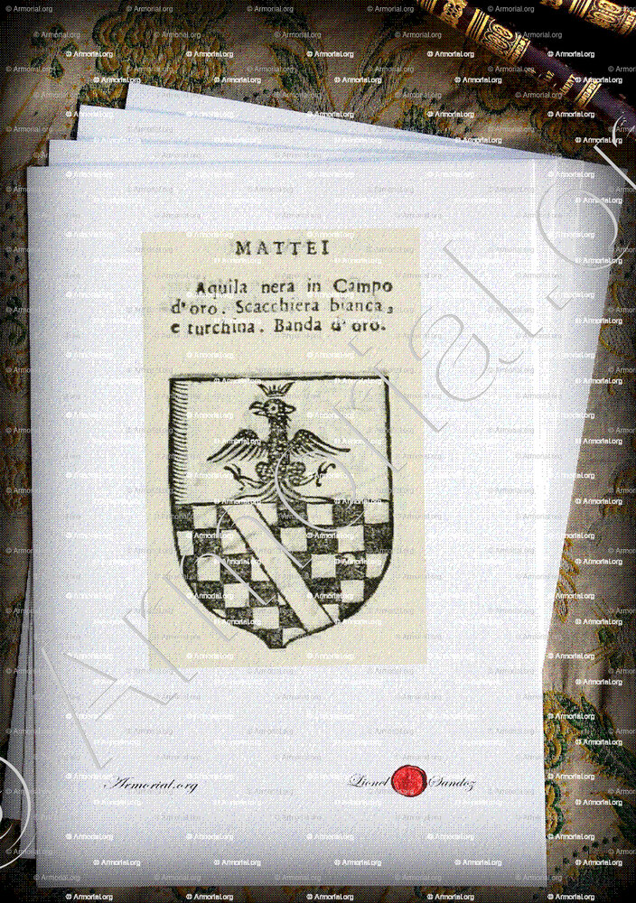 Famiglia MATTEI - Blasone MATTEI - Stemma MATTEI - Stemma di famiglia MATTEI - Lo stemma araldico della famiglia MATTEI - Lo stemma di MATTEI - Araldica e stemma MATTEI - Registro Araldico MATTEI - Stemmario MATTEI - Registro Genealogico MATTEI - Sigillo MATTEI - Archivio MATTEI - Genealogia MATTEI - Albero genealogico MATTEI - Araldica MATTEI - Origine MATTEI - In Storia MATTEI - MATTEI nella nobiltà.