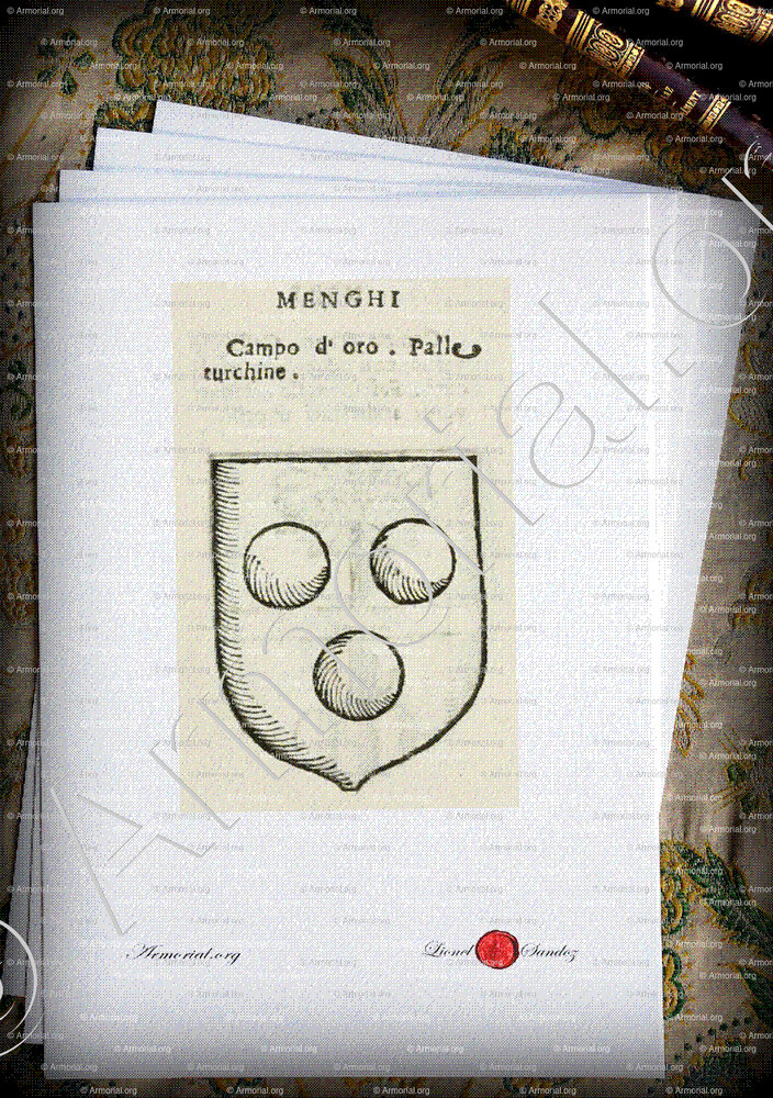 Famille MENGHI - Blason MENGHI - Blasonnement MENGHI - Armoiries MENGHI - Armoiries de famille MENGHI - Armorial MENGHI - Armes MENGHI - Armes sur un écu MENGHI - Ecu MENGHI - Ecus armoriés MENGHI - Bannière, flanchières, caparaçon armoriés MENGHI - Bouclier armorié MENGHI - Sceau MENGHI - Sceau armorié MENGHI - Archives MENGHI - Généalogie MENGHI - Arbre généalogique MENGHI - Ascendance MENGHI - Descendance MENGHI - Héraldique MENGHI - Origine MENGHI - Les MENGHI dans l'Histoire - Les MENGHI dans la noblesse - Devise MENGHI - Armoiries de bourgeoisie MENGHI - Armoiries de noblesse MENGHI.