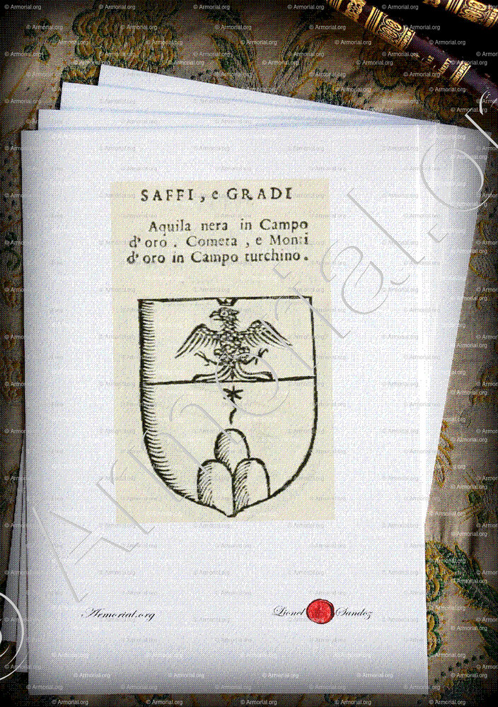 Familia SAFFI e GRADI - Blasón SAFFI e GRADI - Escudo de armas SAFFI e GRADI - Escudo SAFFI e GRADI - Blasón SAFFI e GRADI - Armas SAFFI e GRADI - Las armas de SAFFI e GRADI - Sello SAFFI e GRADI - Archivo SAFFI e GRADI - Genealogía SAFFI e GRADI - Árbol genealógico SAFFI e GRADI - Heráldica SAFFI e GRADI - Origen SAFFI e GRADI - SAFFI e GRADI en Historia - SAFFI e GRADI en la nobleza - Lema SAFFI e GRADI - Divisa SAFFI e GRADI.