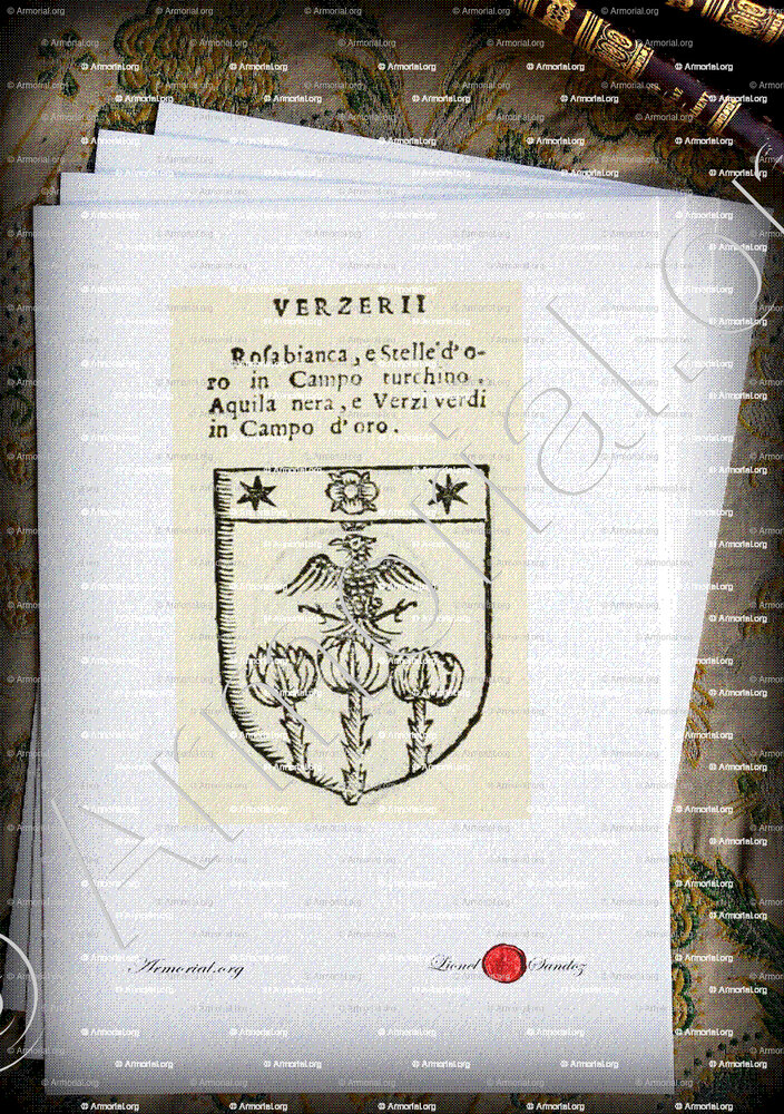 Famiglia VERZERI - Blasone VERZERI - Stemma VERZERI - Stemma di famiglia VERZERI - Lo stemma araldico della famiglia VERZERI - Lo stemma di VERZERI - Araldica e stemma VERZERI - Registro Araldico VERZERI - Stemmario VERZERI - Registro Genealogico VERZERI - Sigillo VERZERI - Archivio VERZERI - Genealogia VERZERI - Albero genealogico VERZERI - Araldica VERZERI - Origine VERZERI - In Storia VERZERI - VERZERI nella nobiltà.