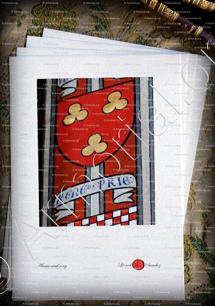 Familia de PRIE - Blasón de PRIE - Escudo de armas de PRIE - Escudo de PRIE - Blasón de PRIE - Armas de PRIE - Las armas de de PRIE - Sello de PRIE - Archivo de PRIE - Genealogía de PRIE - Árbol genealógico de PRIE - Heráldica de PRIE - Origen de PRIE - de PRIE en Historia - de PRIE en la nobleza - Lema de PRIE - Divisa de PRIE.