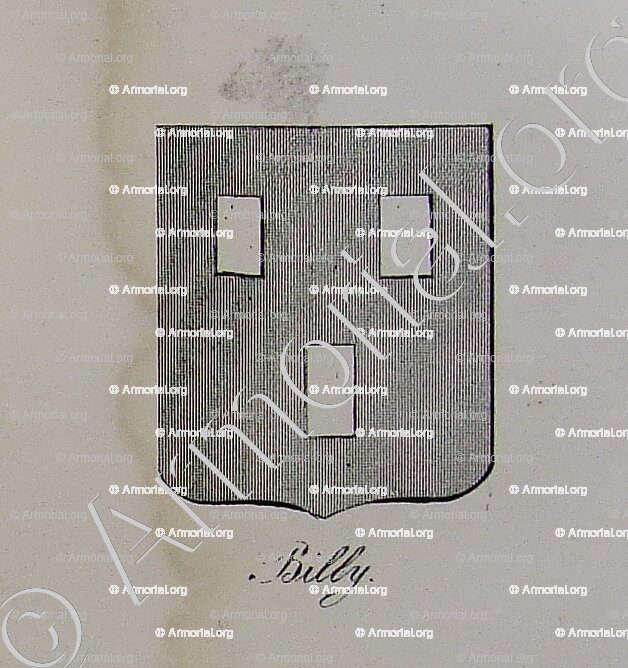 Famiglia BILLY - Blasone BILLY - Stemma BILLY - Stemma di famiglia BILLY - Lo stemma araldico della famiglia BILLY - Lo stemma di BILLY - Araldica e stemma BILLY - Registro Araldico BILLY - Stemmario BILLY - Registro Genealogico BILLY - Sigillo BILLY - Archivio BILLY - Genealogia BILLY - Albero genealogico BILLY - Araldica BILLY - Origine BILLY - In Storia BILLY - BILLY nella nobiltà.