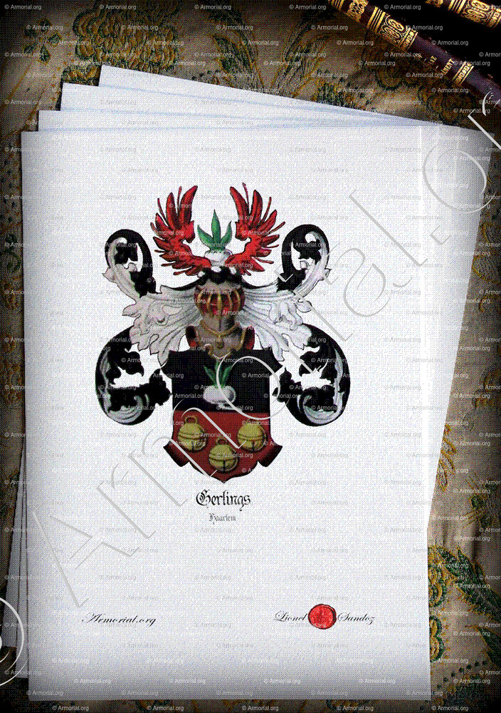 Het familiewapen van de Gerlings is uitzonderlijk door zijn ongebruikelijke elementen: