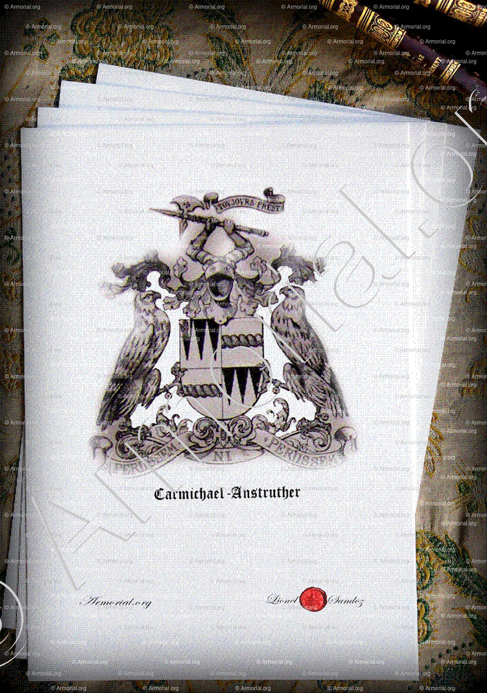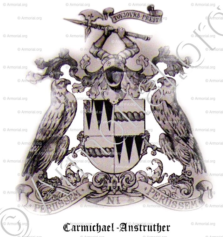 - Devises: PERIISSEM NI PER IISSEM (Anstruther), et TOUJOURS PREST (Carmichael).