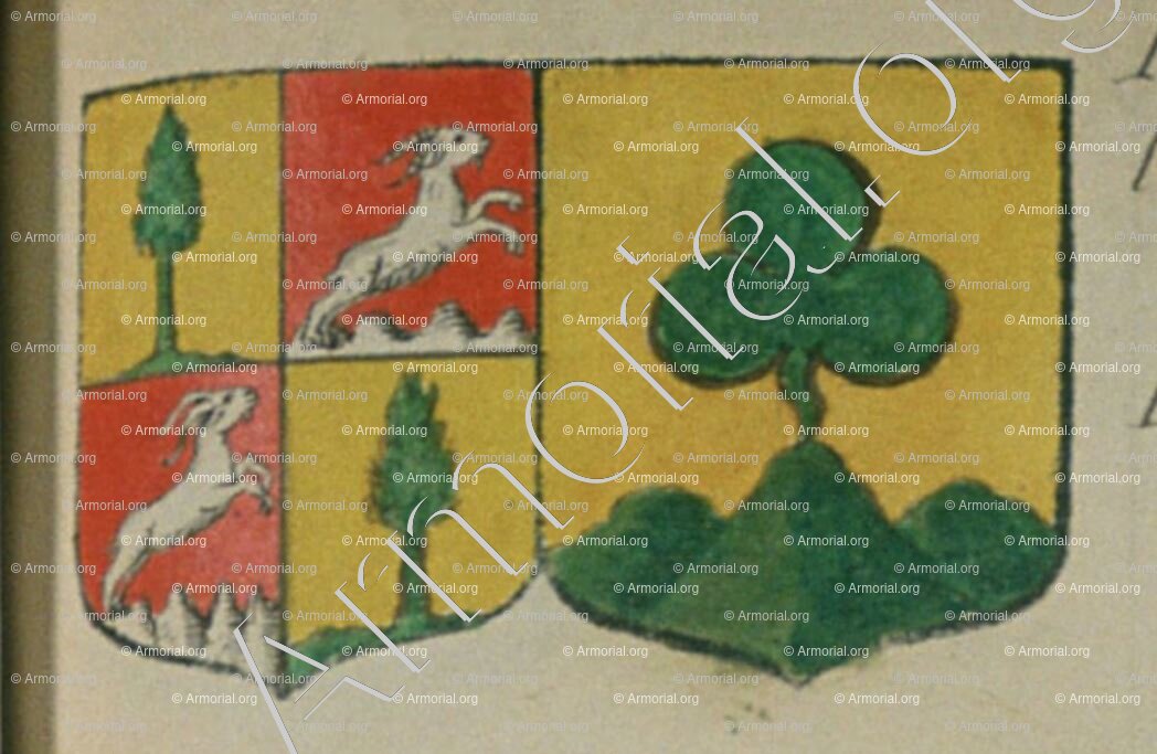 Het was onder het vuur van de Zonnekoning dat Charles d'Hozier, genealoog, algemeen rechter van wapens en wapenschilden van Frankrijk, deze wapens vestigde tussen 1696 en 1710.
