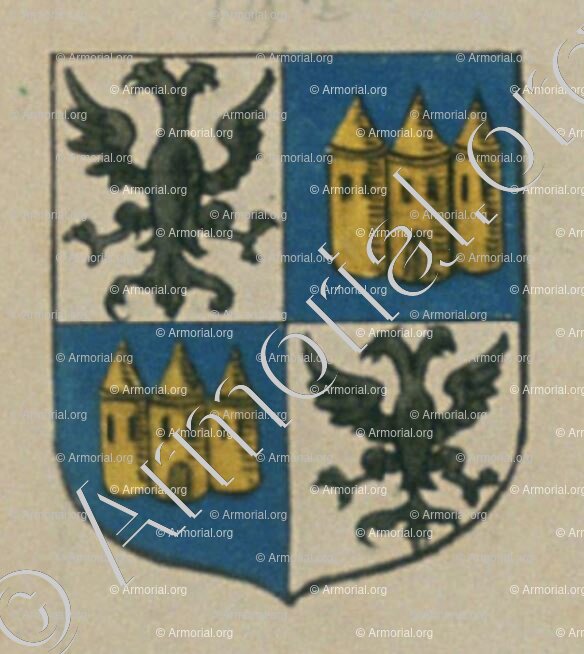 Het was onder het vuur van de Zonnekoning dat Charles d'Hozier, genealoog, algemeen rechter van wapens en wapenschilden van Frankrijk, deze wapens vestigde tussen 1696 en 1710.