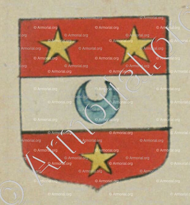 Het was onder het vuur van de Zonnekoning dat Charles d'Hozier, genealoog, algemeen rechter van wapens en wapenschilden van Frankrijk, deze wapens vestigde tussen 1696 en 1710.