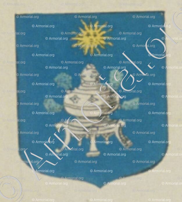 Het was onder het vuur van de Zonnekoning dat Charles d'Hozier, genealoog, algemeen rechter van wapens en wapenschilden van Frankrijk, deze wapens vestigde tussen 1696 en 1710.