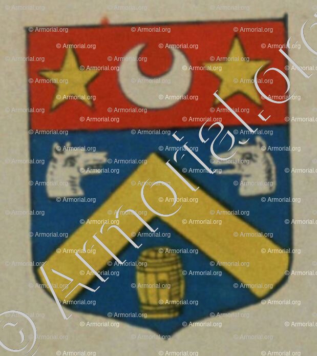 Het was onder het vuur van de Zonnekoning dat Charles d'Hozier, genealoog, algemeen rechter van wapens en wapenschilden van Frankrijk, deze wapens vestigde tussen 1696 en 1710.