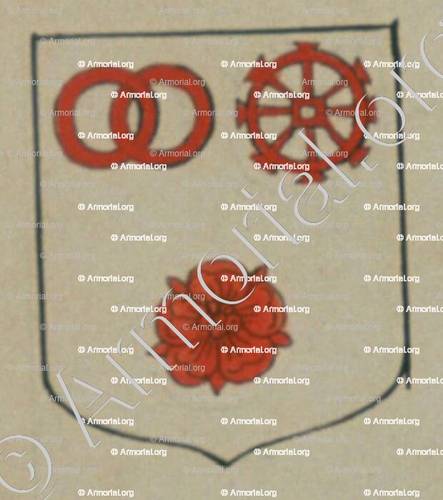 Het was onder het vuur van de Zonnekoning dat Charles d'Hozier, genealoog, algemeen rechter van wapens en wapenschilden van Frankrijk, deze wapens vestigde tussen 1696 en 1710.