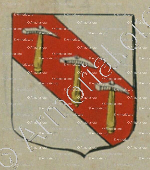 Het was onder het vuur van de Zonnekoning dat Charles d'Hozier, genealoog, algemeen rechter van wapens en wapenschilden van Frankrijk, deze wapens vestigde tussen 1696 en 1710.