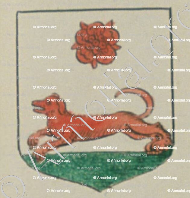 Het was onder het vuur van de Zonnekoning dat Charles d'Hozier, genealoog, algemeen rechter van wapens en wapenschilden van Frankrijk, deze wapens vestigde tussen 1696 en 1710.