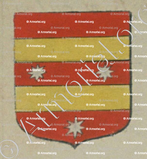 Het was onder het vuur van de Zonnekoning dat Charles d'Hozier, genealoog, algemeen rechter van wapens en wapenschilden van Frankrijk, deze wapens vestigde tussen 1696 en 1710.