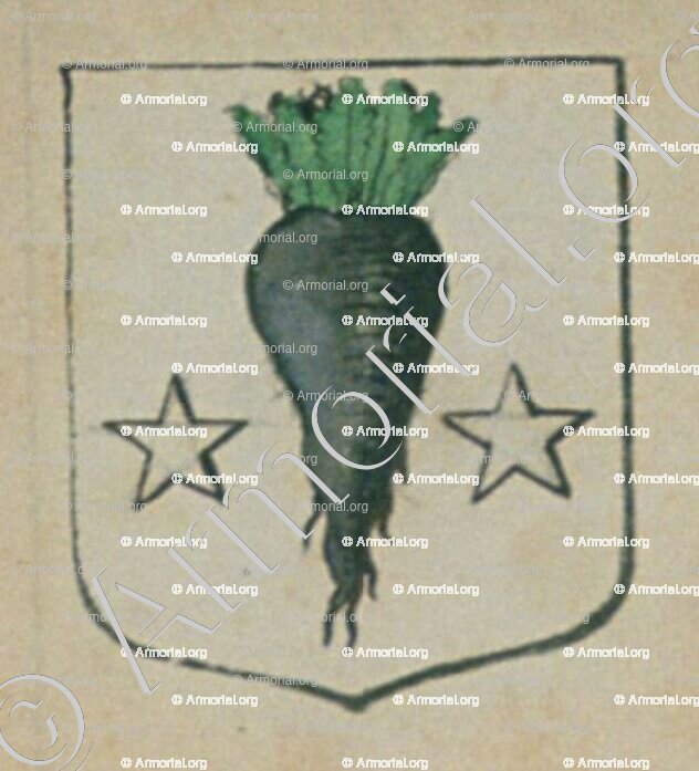 Het was onder het vuur van de Zonnekoning dat Charles d'Hozier, genealoog, algemeen rechter van wapens en wapenschilden van Frankrijk, deze wapens vestigde tussen 1696 en 1710.