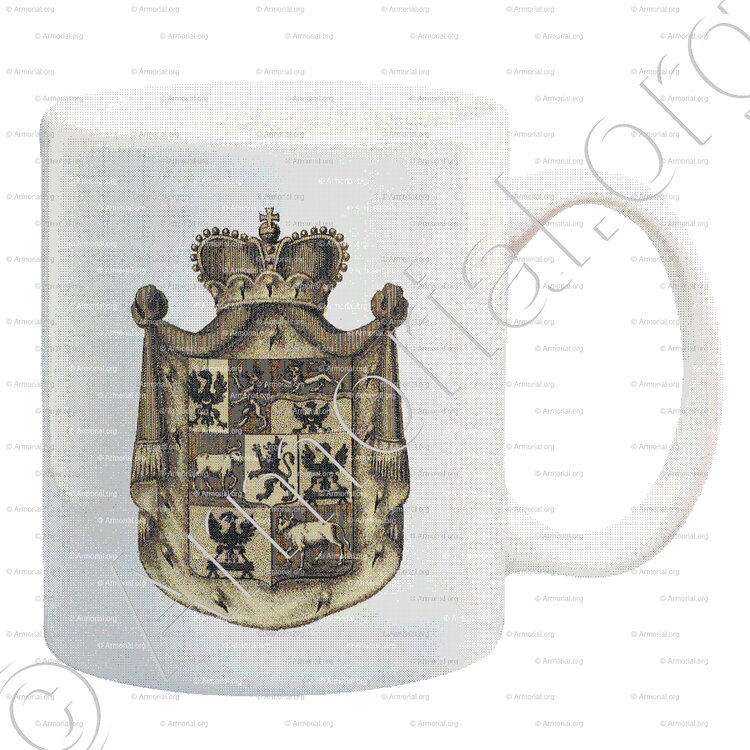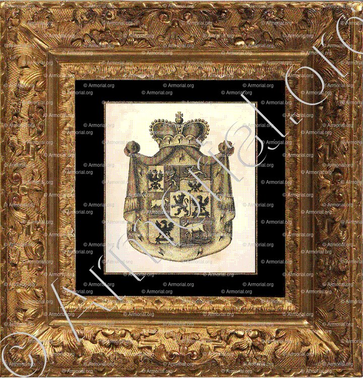 - Lambrequin: d'or et de gueules; 2° une aigle éployée de sable, becquée, membrée et couronnée d'or.