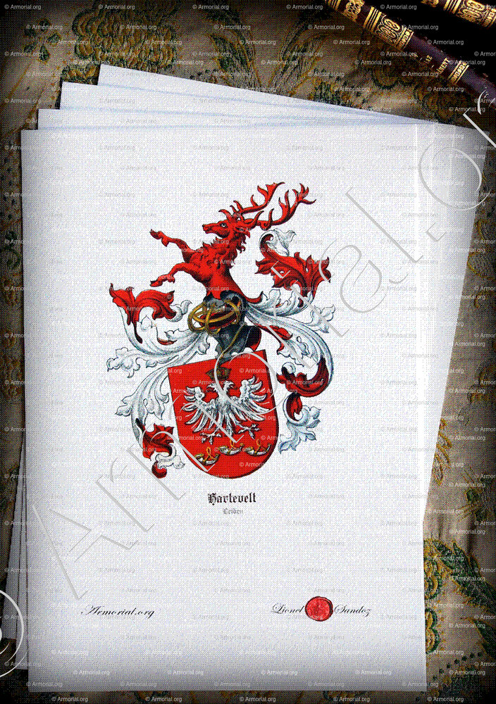 Le blason de la famille HARTEVELT témoigne de son prestige et de son enracinement historique dans la région de Leyde. Réunissant des symboles de noblesse, de puissance et de tradition, il reflète l'héritage d'une lignée ayant joué un rôle marquant dans la société hollandaise.