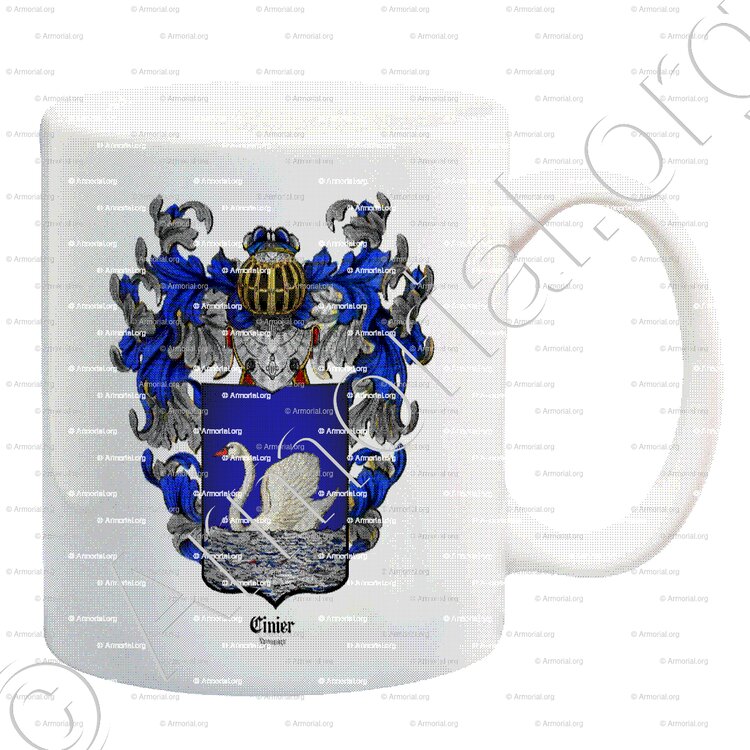 " D'azur, au cygne d'argent, nageant sur une rivière de même. "