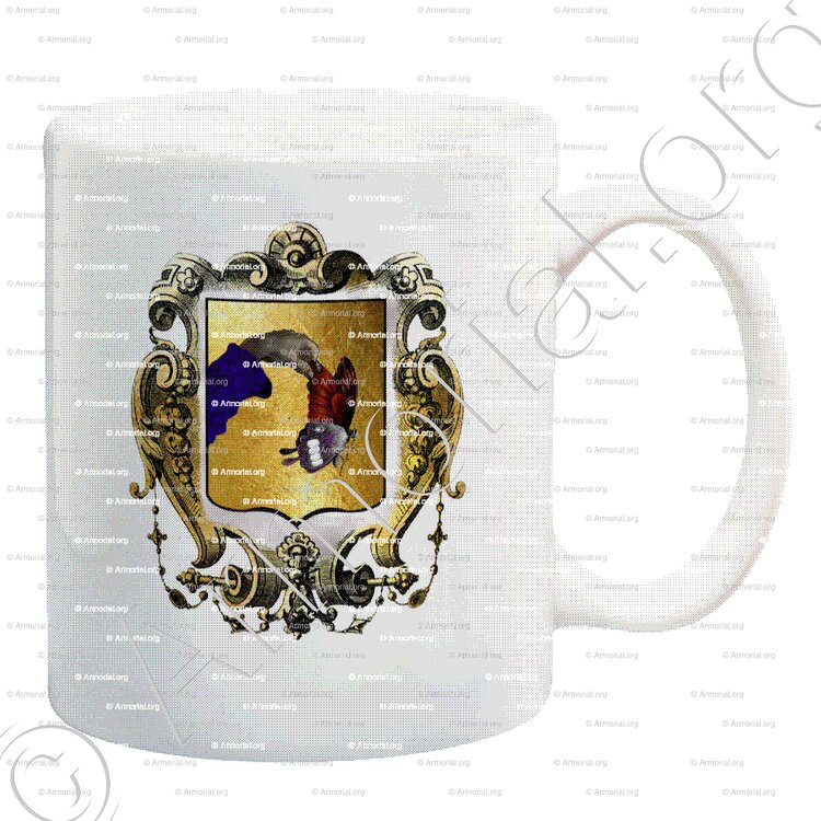 " D'or, à un bras d'azur, tenant d'une main de carnation, un papillon. movant du flanc dextre. "