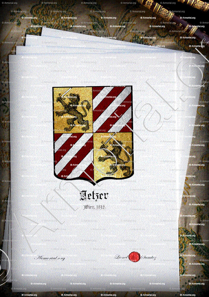 - Wappen der Freiherren von Jetzer 1815, sodann des Eugen Freiherrn von Fleschner-Jetzer und seiner Nachfahren, 1815-1844.