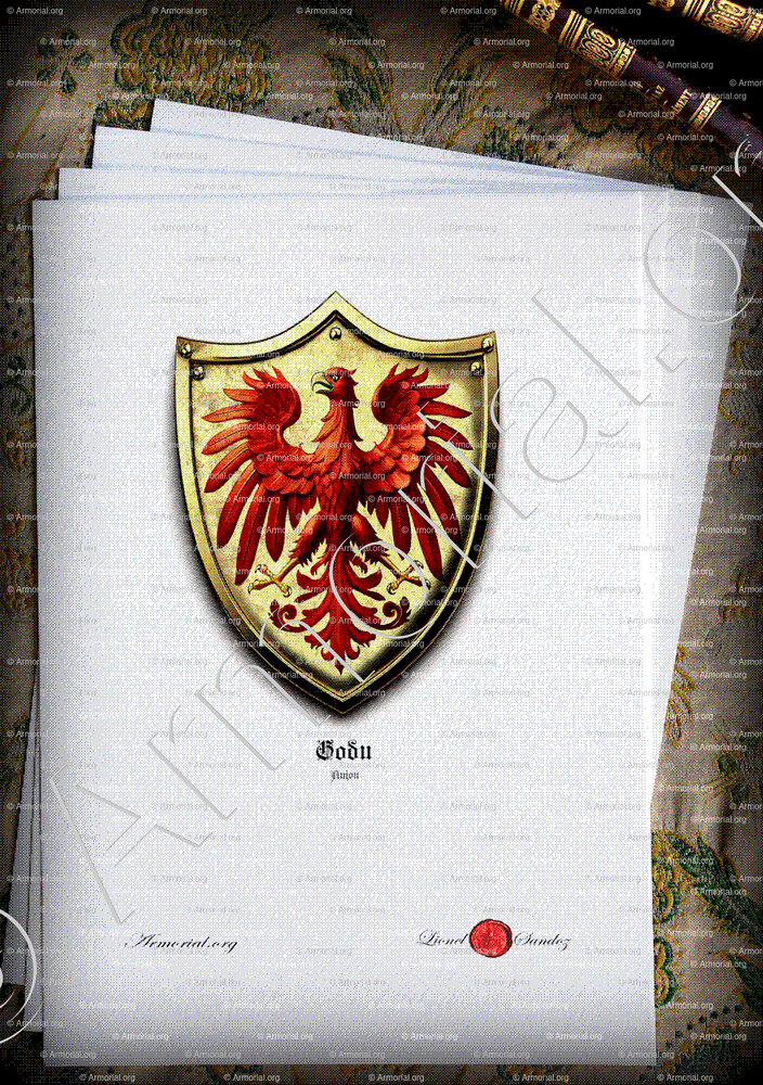 * L'aigle de gueules (rouge) : L'aigle est un symbole de puissance, de majesté et de souveraineté. Il représente également la vision claire, l'élévation et le courage. Dans certaines cultures, l'aigle est aussi associé à des aspects divins et impériaux.