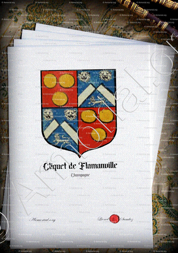 Famille CLIQUET de FLAMANVILLE - Blason CLIQUET de FLAMANVILLE - Blasonnement CLIQUET de FLAMANVILLE - Armoiries CLIQUET de FLAMANVILLE - Armoiries de famille CLIQUET de FLAMANVILLE - Armorial CLIQUET de FLAMANVILLE - Armes CLIQUET de FLAMANVILLE - Armes sur un écu CLIQUET de FLAMANVILLE - Ecu CLIQUET de FLAMANVILLE - Ecus armoriés CLIQUET de FLAMANVILLE - Bannière, flanchières, caparaçon armoriés CLIQUET de FLAMANVILLE - Bouclier armorié CLIQUET de FLAMANVILLE - Sceau CLIQUET de FLAMANVILLE - Sceau armorié CLIQUET de FLAMANVILLE - Archives CLIQUET de FLAMANVILLE - Généalogie CLIQUET de FLAMANVILLE - Arbre généalogique CLIQUET de FLAMANVILLE - Ascendance CLIQUET de FLAMANVILLE - Descendance CLIQUET de FLAMANVILLE - Héraldique CLIQUET de FLAMANVILLE - Origine CLIQUET de FLAMANVILLE - Les CLIQUET de FLAMANVILLE dans l'Histoire - Les CLIQUET de FLAMANVILLE dans la noblesse - Devise CLIQUET de FLAMANVILLE - Armoiries de bourgeoisie CLIQUET de FLAMANVILLE - Armoiries de noblesse CLIQUET de FLAMANVILLE.