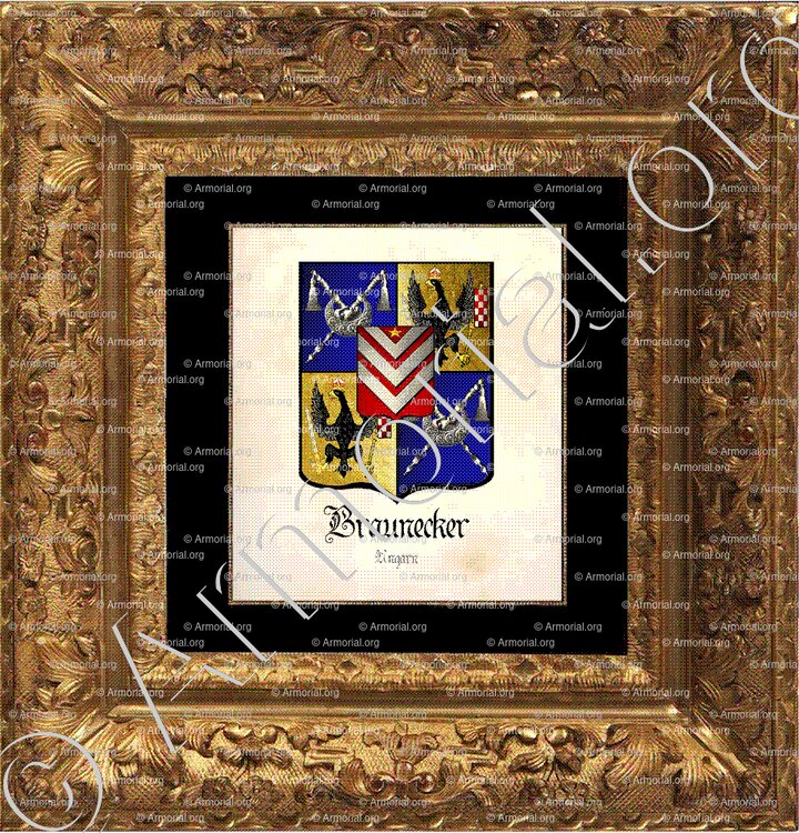 Bien qu'il n'y ait aucune preuve formelle que cette famille soit à l'origine des barons BRAUNECKER, les quartiers 1 et 4 des armes semblent commémorer des victoires sur les Turcs.