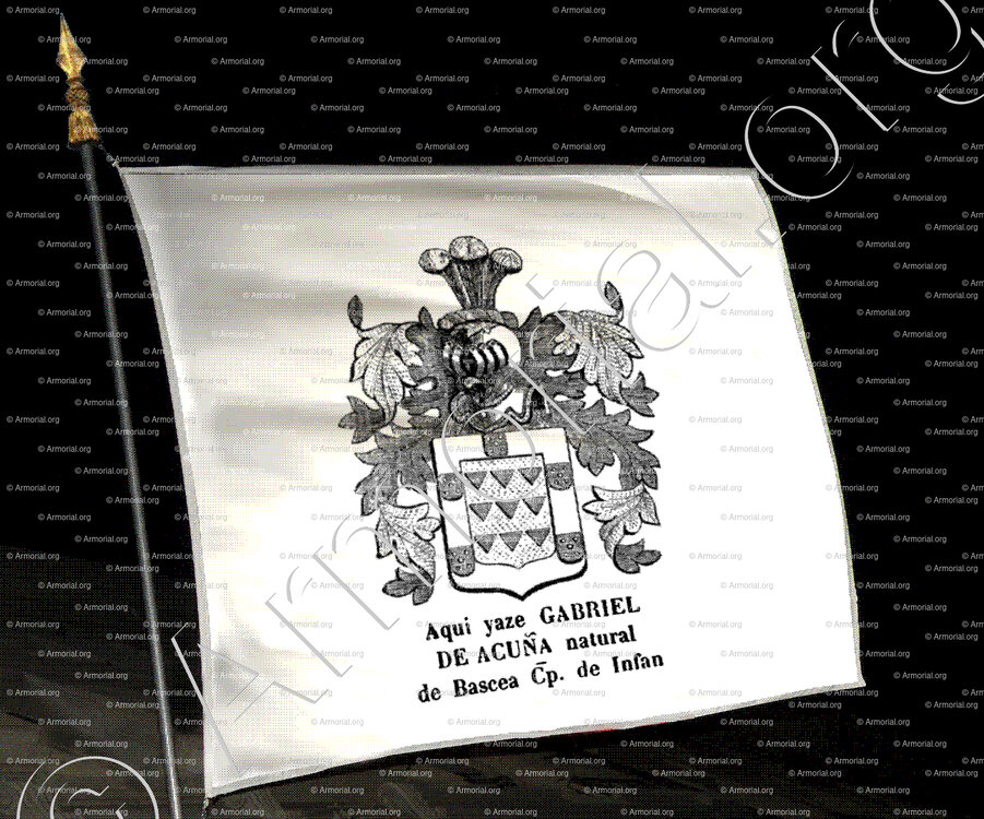 Hier rust GABRIEL DE ACUÑA, geboren in Bascea, Kapitein van de Infanterie.