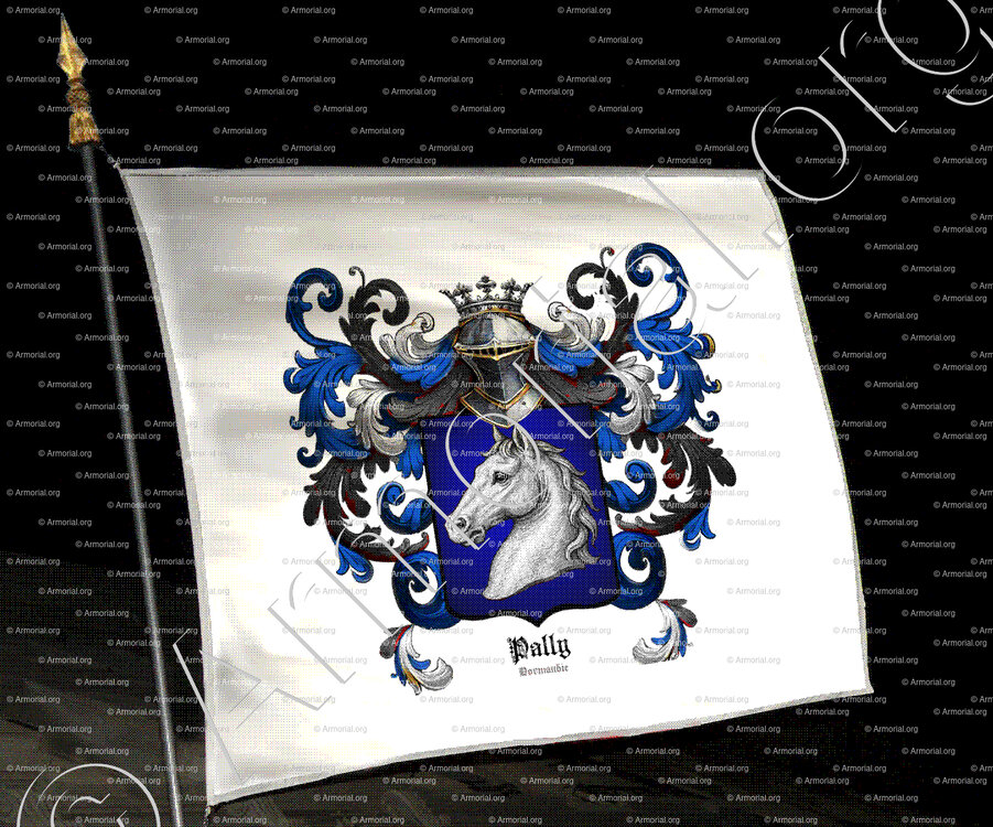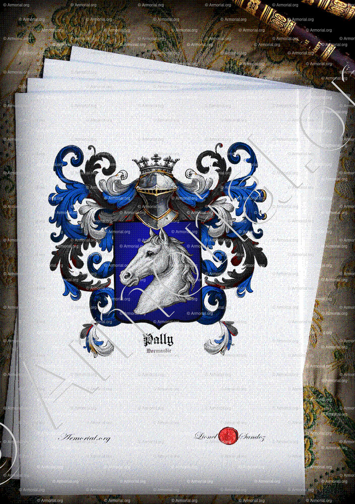 La famille PALLY, originaire de Normandie en France, est attestée dès le XVIIe siècle dans des sources héraldiques et généalogiques.