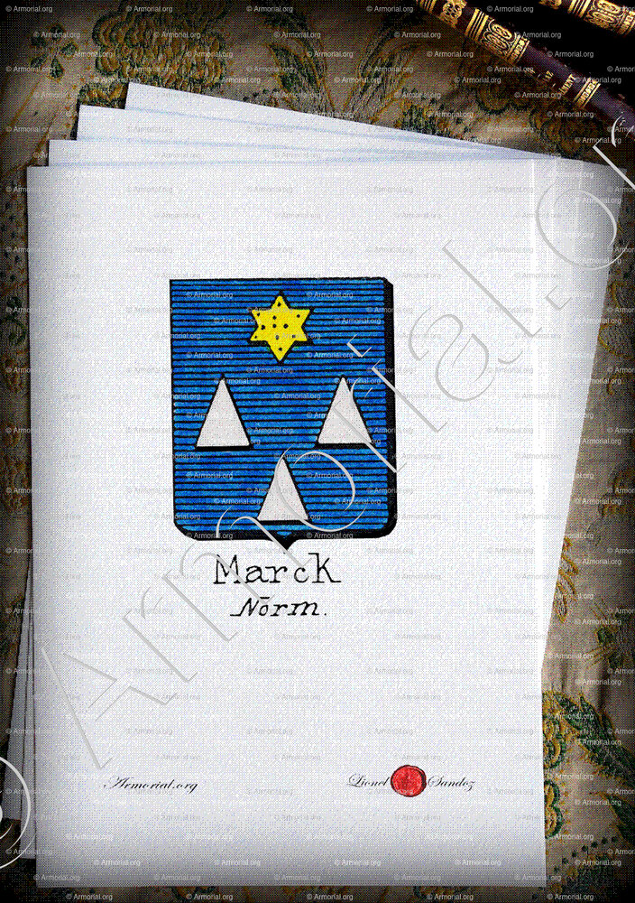 Le patronyme MARCK, porté tant par les illustres descendants de la maison comtale rhénane que par des familles établies en Normandie dès le début du XVIᵉ siècle, évoque une lignée militaire, chevaleresque et administrative, fidèle au service du roi et profondément enracinée dans l’histoire féodale de la France du Nord.