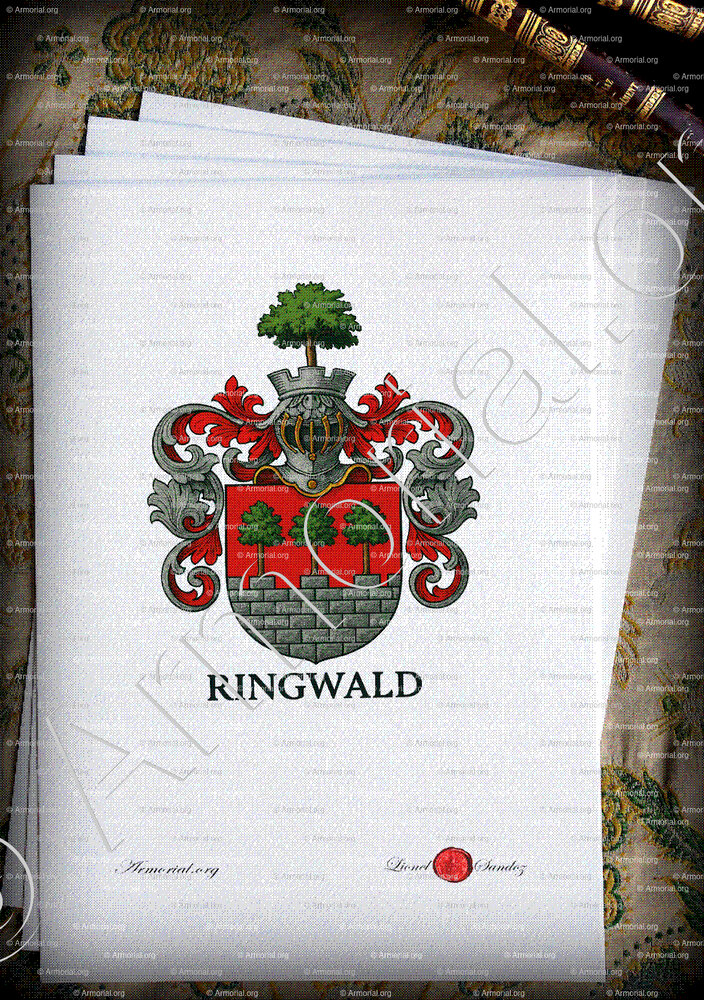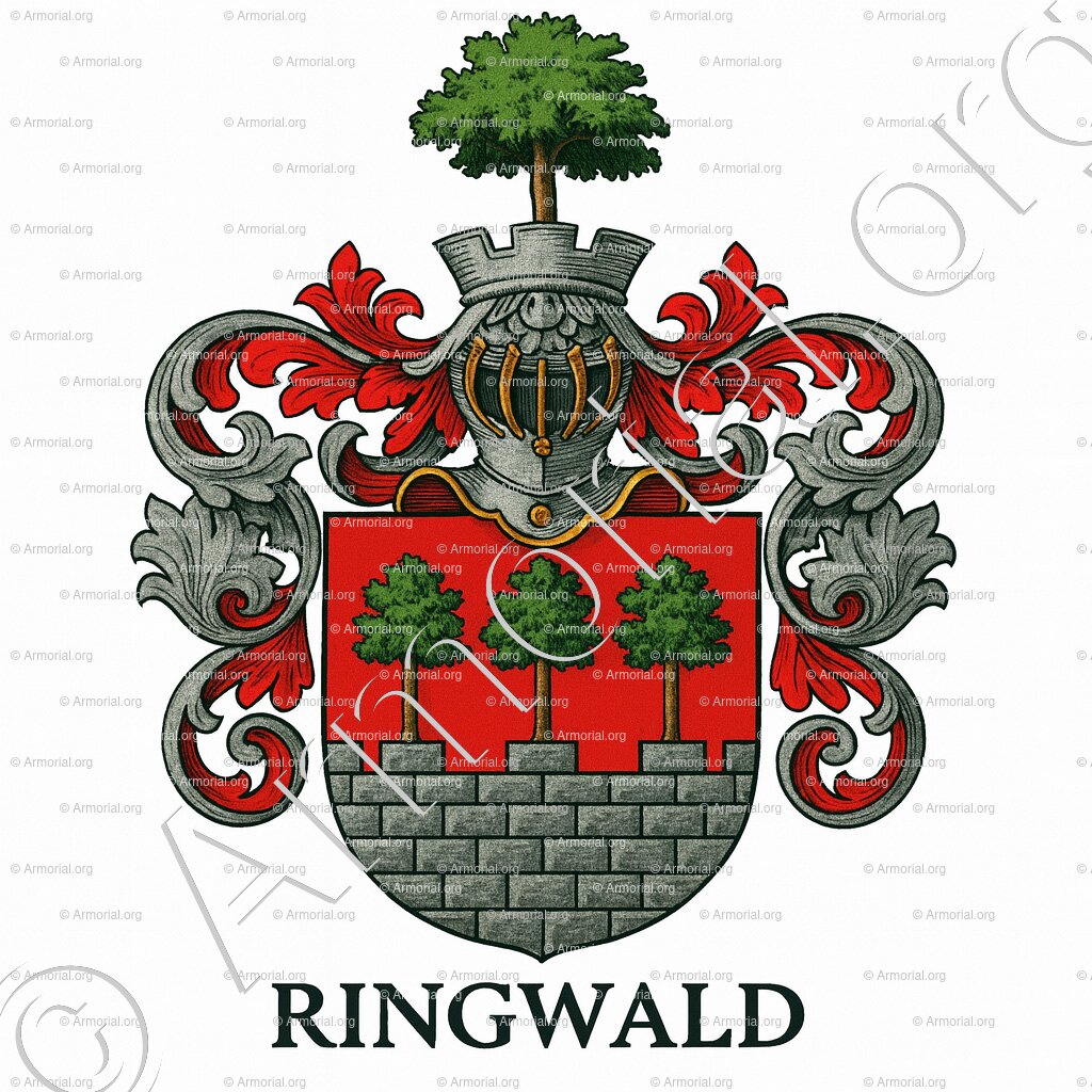 Das Wappen der RINGWALD ist somit ein schönes Beispiel städtischer Bürgerheraldik, in welcher Mauer und Bäume sowohl die Verbundenheit mit der befestigten Stadt Basel als auch eine sprechende Anspielung auf den Familiennamen ausdrücken.