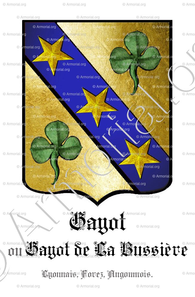 La famille GAYOT, dite aussi GAYOT de LA BUSSIÈRE, est une ancienne famille du Lyonnais, du Forez et de l’Angoumois, d’origine italienne. Selon la tradition familiale, elle provient de Florence (ou, selon certaines branches, de Bologne), où elle portait le nom de GAYOTTI ou GAYOT avant sa francisation.