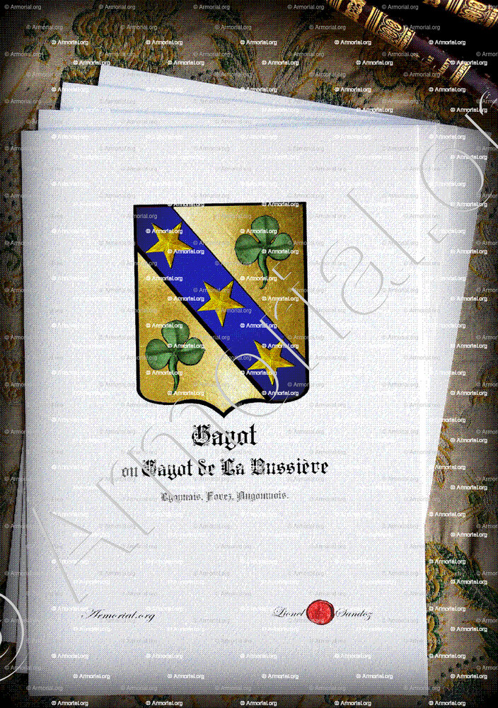 Les armoiries principales des GAYOT de LA BUSSIÈRE (branches de BUSSIÈRE et de CHÂTEAUNEUF) sont :