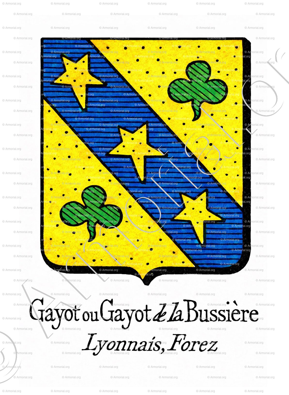 La famille GAYOT, dite aussi GAYOT de LA BUSSIÈRE, est une ancienne famille du Lyonnais, du Forez et de l’Angoumois, d’origine italienne. Selon la tradition familiale, elle provient de Florence (ou, selon certaines branches, de Bologne), où elle portait le nom de GAYOTTI ou GAYOT avant sa francisation.