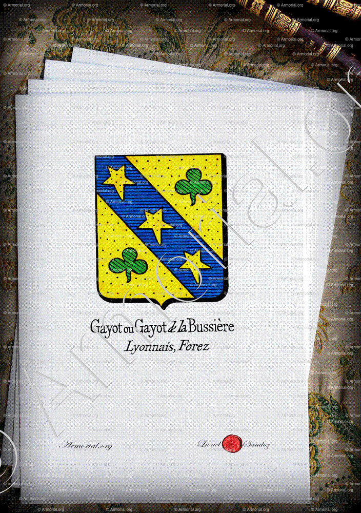 Les armoiries principales des GAYOT de LA BUSSIÈRE (branches de BUSSIÈRE et de CHÂTEAUNEUF) sont :