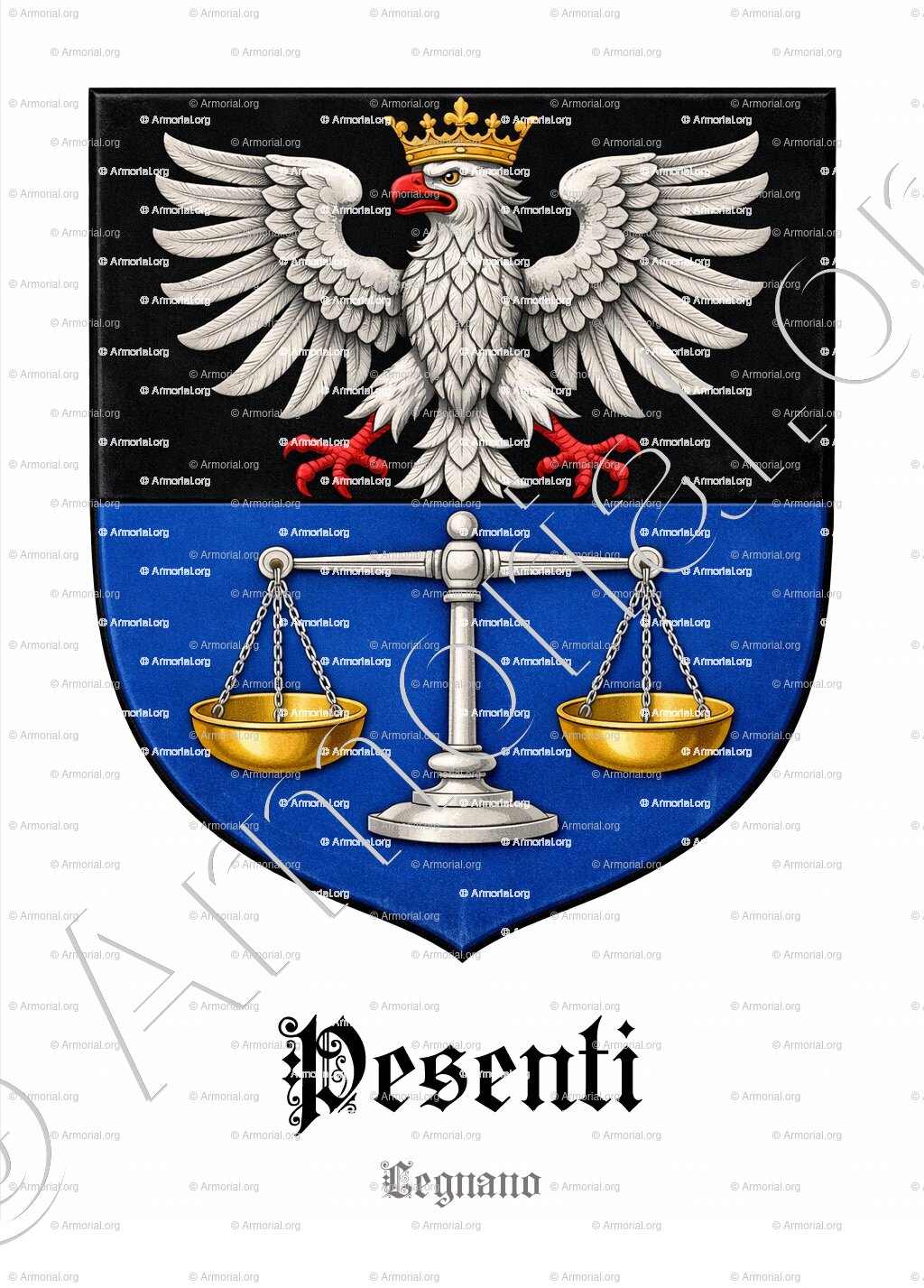 La famiglia PESENTI di Legnago è un’antica stirpe nobile italiana originaria di Legnago, in Veneto. Attestata fin dal XV secolo, si distingue per la sua presenza continua nel territorio veronese e per il suo stemma caratteristico: «troncato di nero e d’azzurro, nel primo all’aquila d’argento rostrata e membrata di rosso coronata d’oro, nel secondo alla bilancia d’argento con i piatti d’oro».