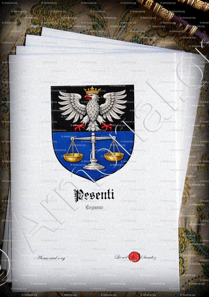 Lo stemma della famiglia PESENTI di Legnago si blasona come segue :