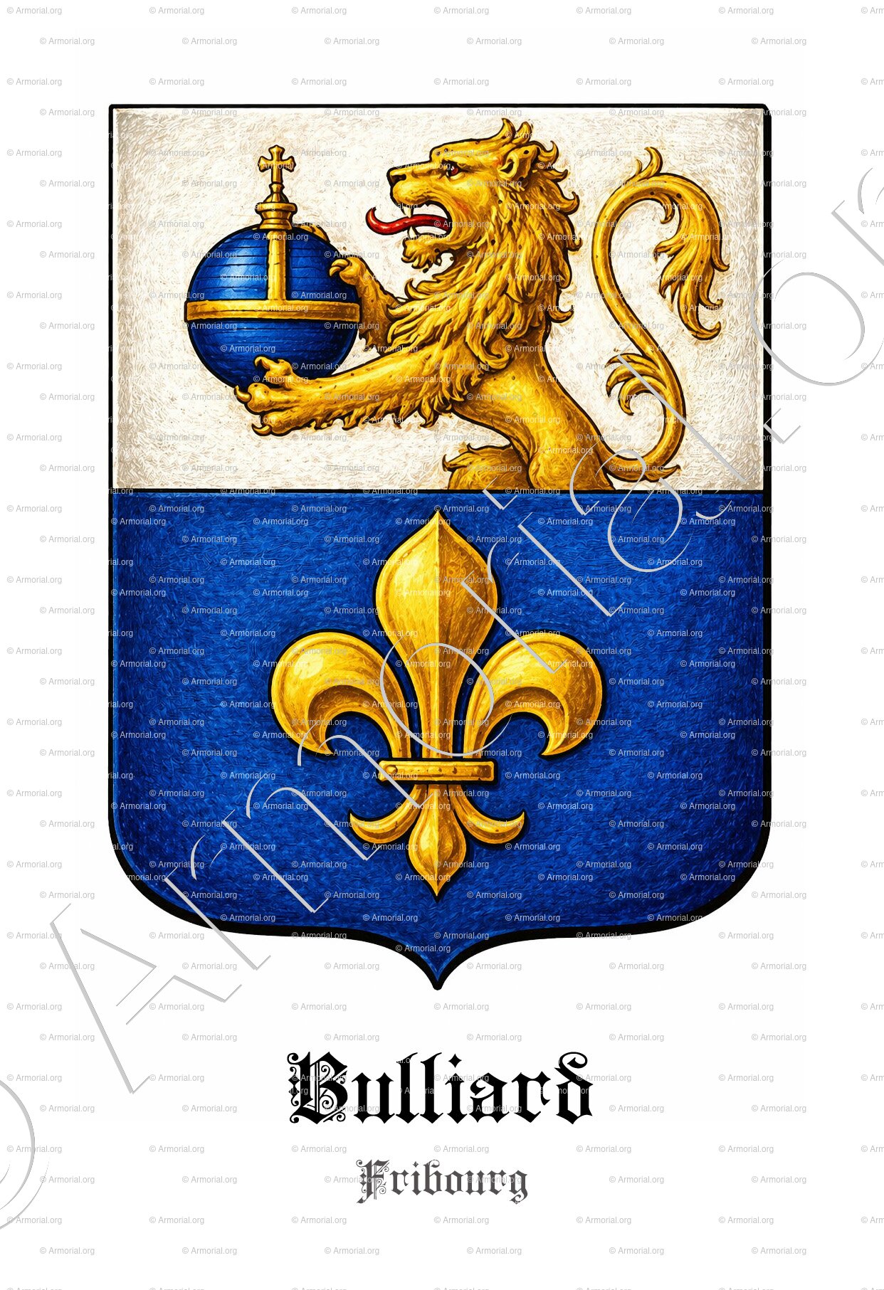 Die Familie BULLIARD stammt aus dem Kanton Fribourg in der Schweiz, wo sie seit der Mitte des 16. Jahrhunderts nachweisbar ist. Bereits 1555 wird ein Kanoniker BULLIARD erwähnt. Sie zählt zu den bürgerlichen Familien mehrerer Ortschaften des Kantons, darunter Arconciel, Corpataux, Farvagny-le-Petit, Matran, Rossens und Cressier.