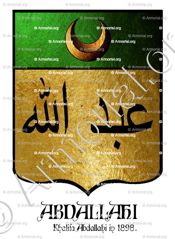 ABDALLAHI est un nom qui s’accompagne d’un blason. Origine : Khalifa Abdallahi, 1898 , Africa.