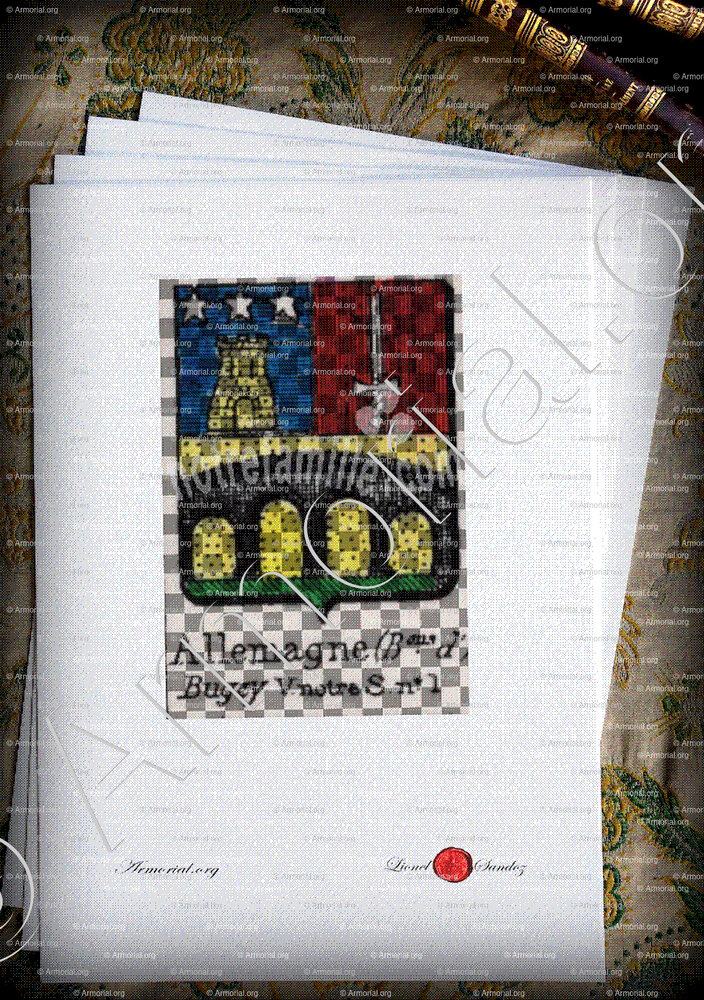 « Allemagne (Bons. d') est un nom qui s’accompagne d’un blason » ( , )